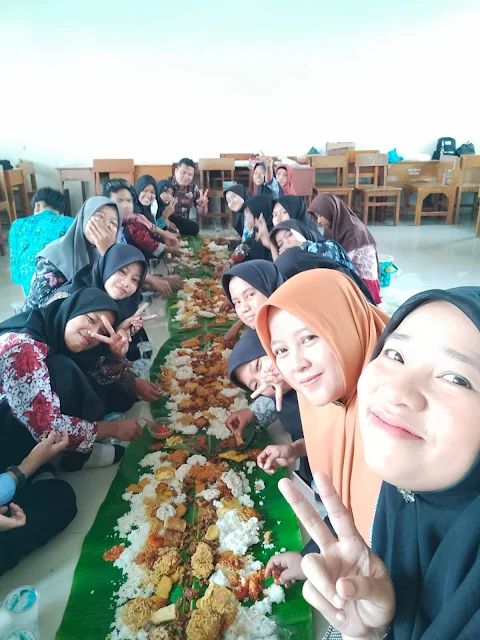 FIQO-Kebersamaan guru dan siswa bukan menjadi jarak yang memisahkan tatkala berada dalam lingkungan sekolah yang nyaman. Sebagaimana yang bisa dicontohkan dalam kegiatan berikut yaitu makan bersama di kelas X MM.